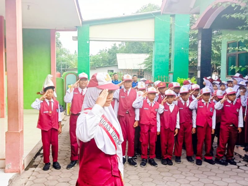 para guru dan murid SD Negeri 2 Wringin Anom melaksanakan upacara rutin.